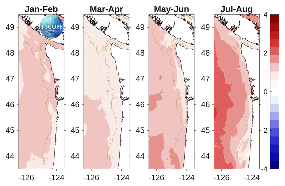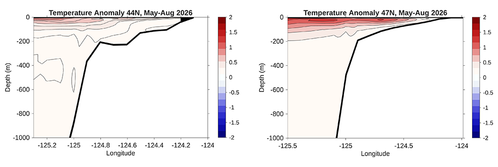 We note that the NANOOS Averages & Anomalies App shows that buoys along the Washington and Oregon shelf are recording sea surface temperatures warmer than the long-term averages since the start of 2026.
