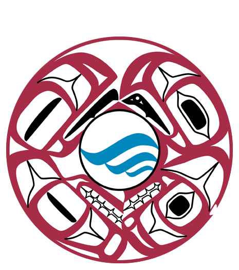 The logo depicts a Circle of Protectors. In the top left is Raven, in the bottom left Wolf. Eagle is in the top right and Killer Whale in the bottom right. Both Raven and Eagle are protectors of the sky. Wolf protects the land and Killer Whale the ocean. Together the four protect the entirety of the environment in which we live. They are also in a continuous circle of red, the color of life and their interconnectivity includes all of life including our own. Within the center of the logo are Tsimshian-stylized ocean waves, the very heart of NANOOS.