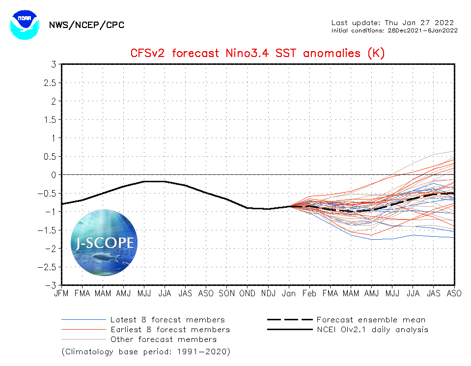 - Multivariate ENSO Index: The January 2022 CFS forecasts a transition from La Nina conditions to ENSO neutral conditions in the spring and summer of 2022.